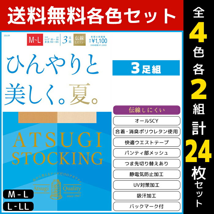 4色2組ずつ 送料無料8組セット 計24枚 ATSUGI STOCKING ひんやりと美しく。夏。 3足組 アツギ ATSUGI | 女性 レディース レディス パンスト パンティストッキング パンティーストッキング 涼しい 涼感 ベージュ 夏 夏用 サマー サマーストッキング アツギストッキング