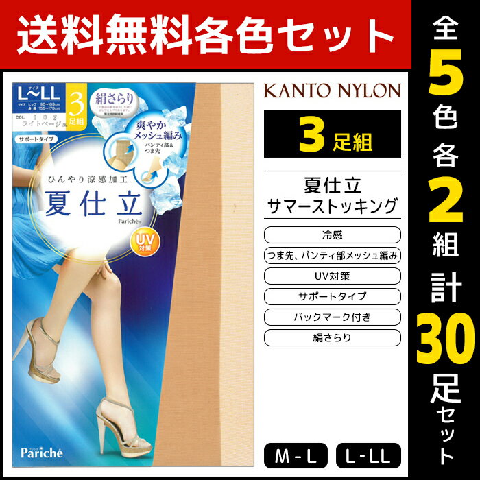 5色2組ずつ 送料無料10組セット 計30足 夏仕立 ひんやり涼感 サマーストッキング 3足組 パンスト 関東ナイロン | ストッキング パンティストッキング レディース 女性 黒 肌色 ベージュ 夏用 夏 涼感 涼しい 冷感 ひんやり クール 日焼け対策 通勤 夏用パンスト ビジネス