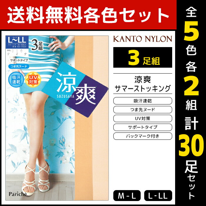 5色2組ずつ 送料無料10組セット 計30足 涼爽 サマーストッキング 3足組 パンスト 関東ナイロン | ストッキング パンティストッキング レディース 女性 黒 肌色 ベージュ 夏用 夏 涼感 涼しい クール 日焼け対策 蒸れない 通勤 学校 婦人 夏用パンスト ビジネス おしゃれ 通学
