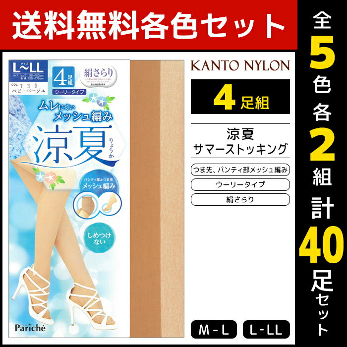 5色2組ずつ 送料無料10組セット 計40足 涼夏 ムレにくいメッシュ編み サマーストッキング 4足組 パンスト 関東ナイロン | ストッキング パンティストッキング レディース 女性 黒 肌色 ベージュ 夏用 日焼け対策 紫外線対策 グッズ 通勤 涼感 涼しい 夏用パンスト ビジネス