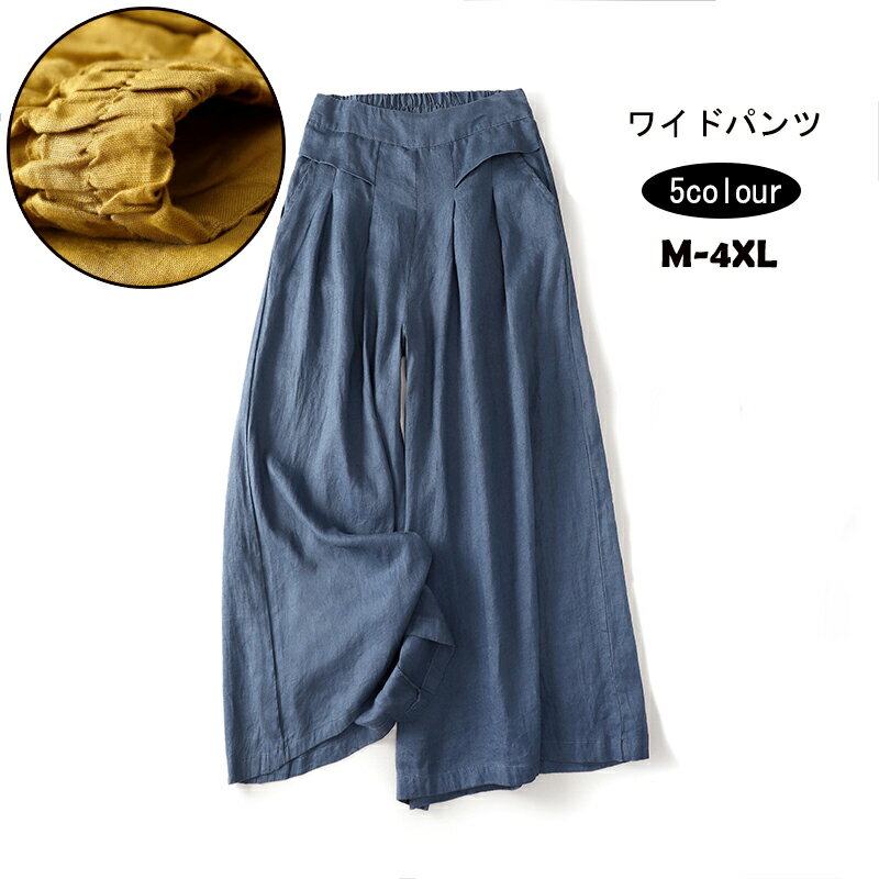 送料無料 ガウチョパンツ リネン ワイドパンツ 無地 ゆったり パンツ ボトムス レディースワイド バギーパンツ レギンス ウエストゴム 麻風 ストレッチ ボトムス ズボン 麻 亜麻 麻混 9分丈 大人気のガウチョパンツ バギーパン スカーチョ 美脚 ゆったり 体型カバー