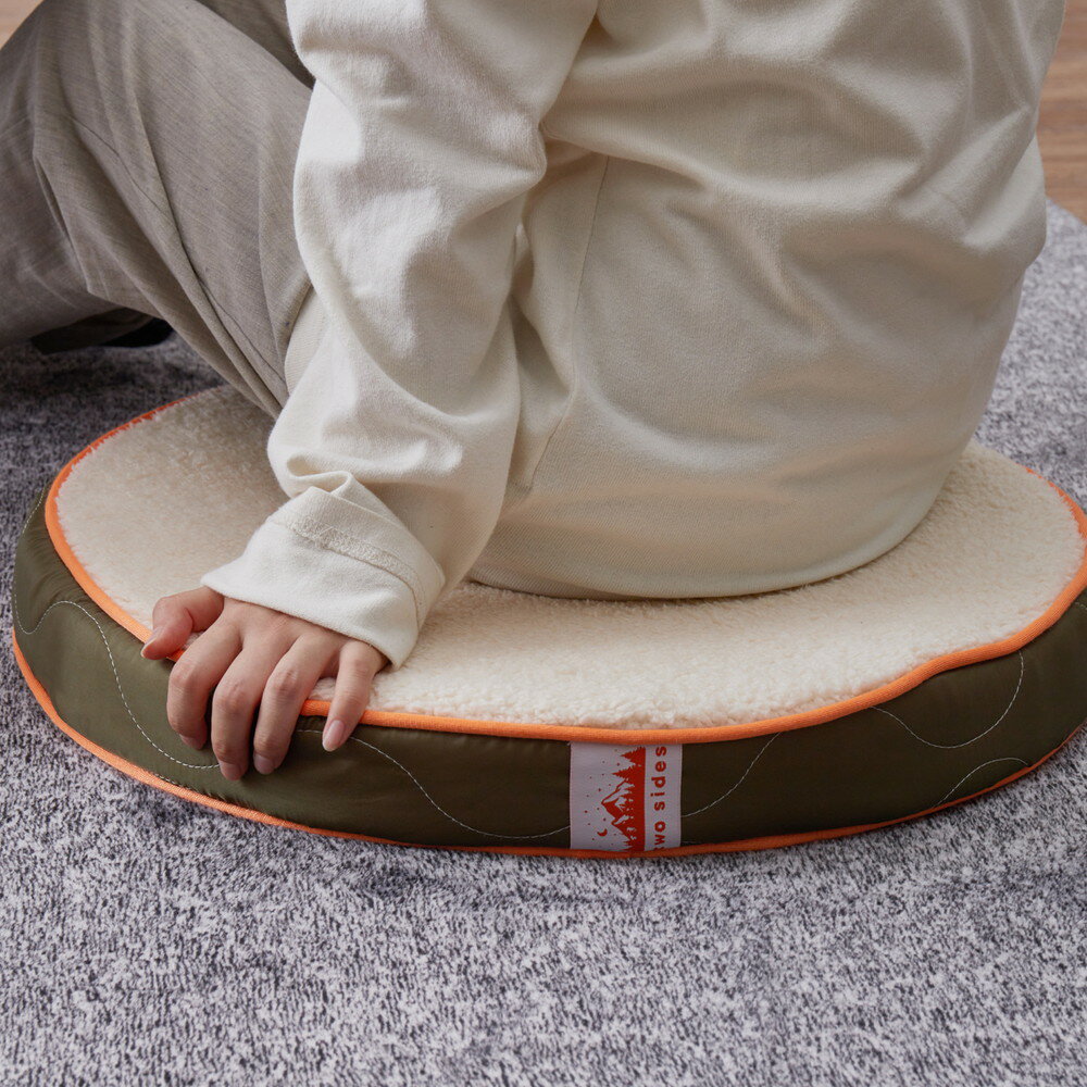 two sides ラウンドクッション 約50R×6cm 座布団 クッション リバーシブル アウトドア レジャー マクラ 枕 背当て シンプル おしゃれ