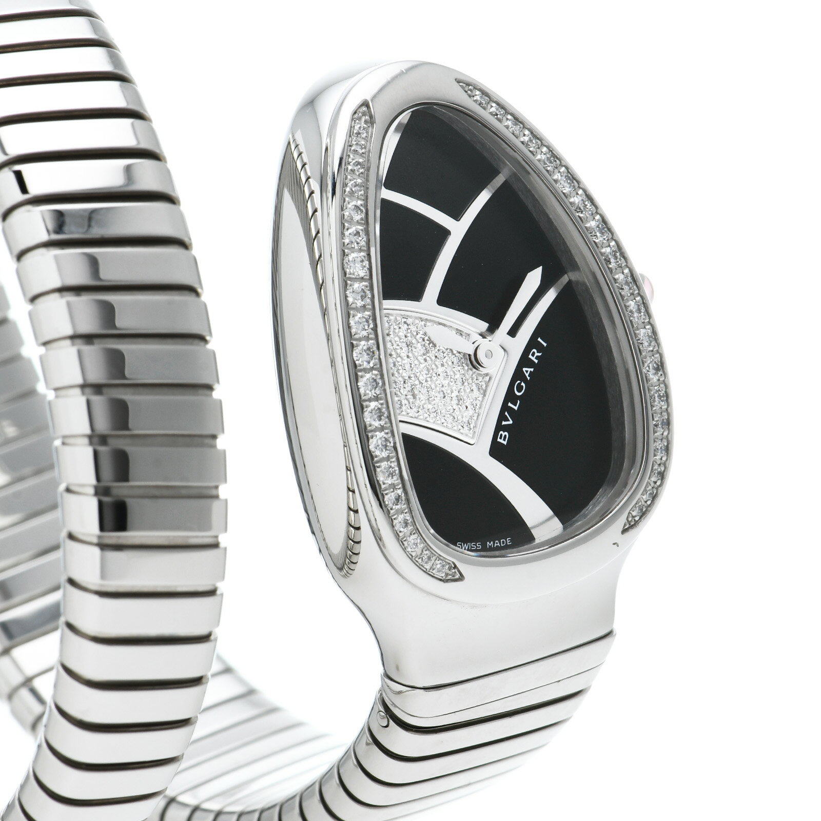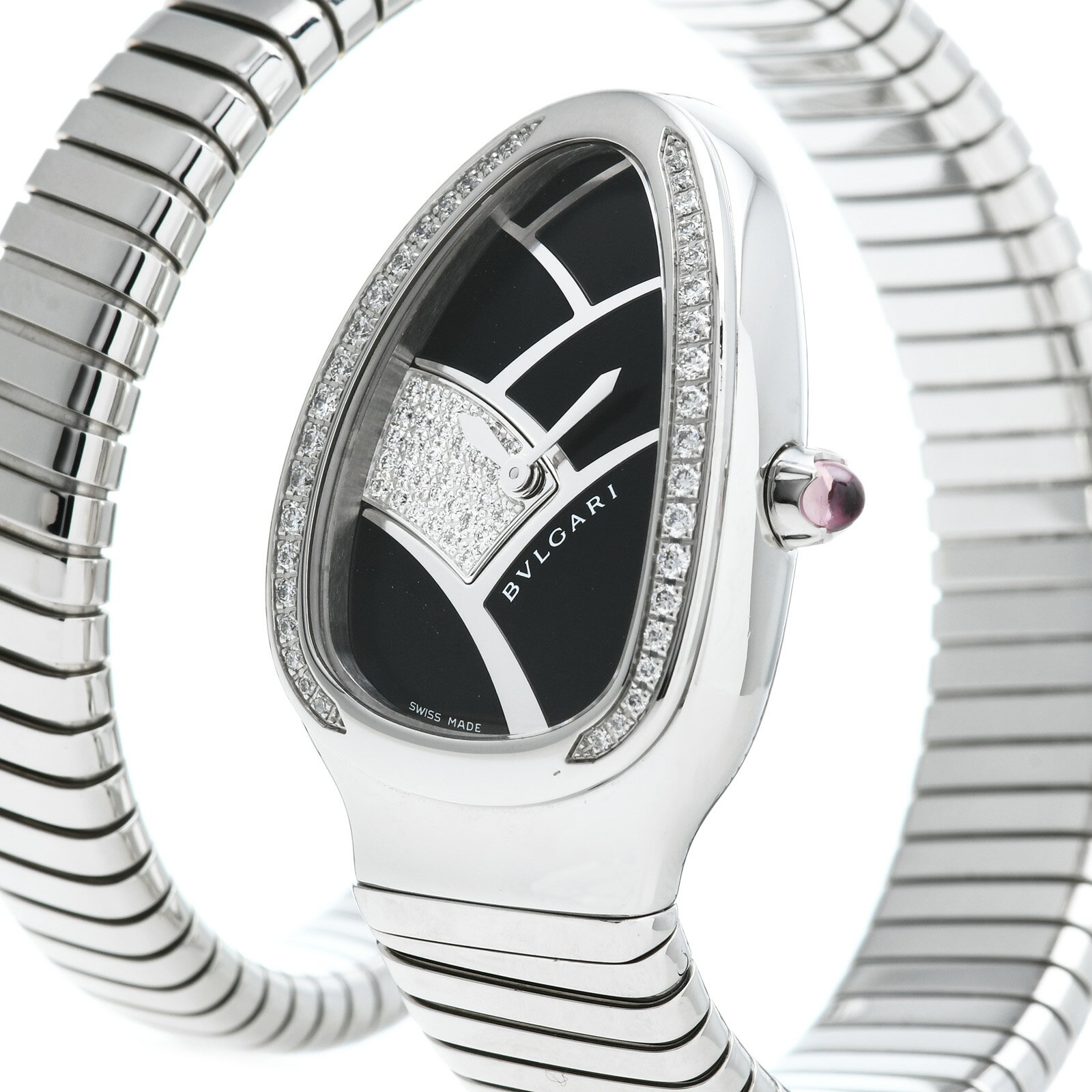 【WATCHNIAN誕生記念 全品P2倍 〜8/23】【中古】 ブルガリ BVLGARI セルペンティ トゥボガス シングルスパイラル SP35BD1SDS.1T/L ブラック/ダイヤモンド レディース 腕時計