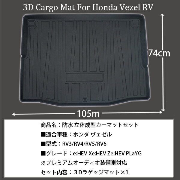 【即日発送】新型 ヴェゼル RV ラゲッジマット トランクマット 防水 3D 立体 フロアマット 水洗い可能 TPO素材 内装 カスタム パーツ トランクトレイ 釣り レジャーマット カーマット TPO キャンプ ソロキャン【送料無料】