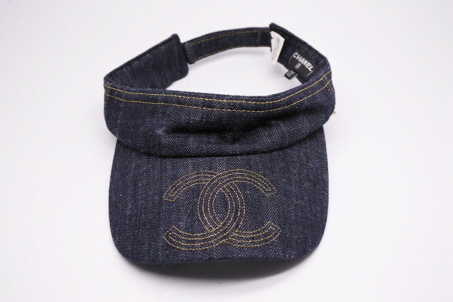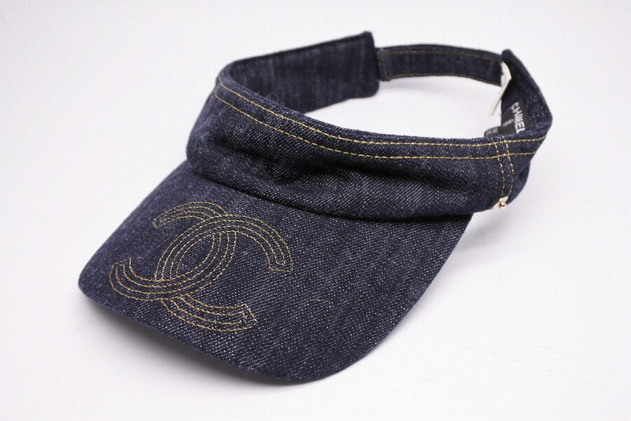 [USED/中古]CHANEL シャネル サンバイザー デニムサンバイザー ココマーク ゴールド刺繍 Bランク【中古】