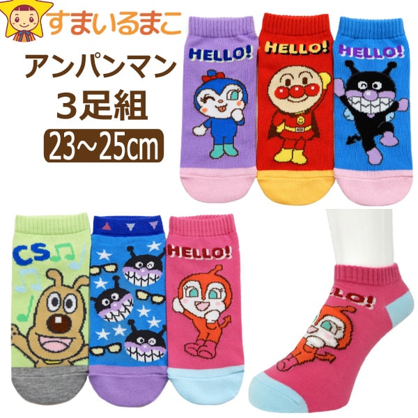 靴下 レディース それいけ!アンパンマン ショートソックス 3足組 23〜25cm 色柄おまかせ set1168 ネコポス便は送料無料♪ 女性 婦人 くつした くつ下 靴下 ソックス ショート くるぶし スニーカー セット キャラクター 2k5