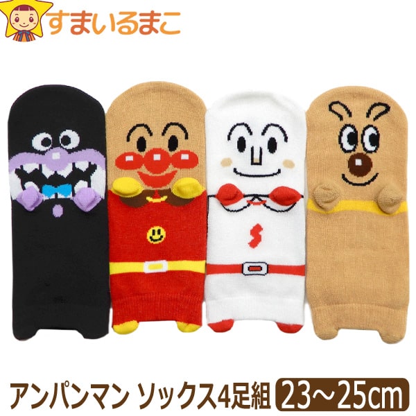 靴下 レディース それいけ!アンパンマン 履育 パペット ショートソックス 4足組 23〜25cm set1171 ネコポス便は送料無料♪ 女性 婦人 くつした くつ下 靴下 ソックス ショート くるぶし スニーカー セット キャラクター