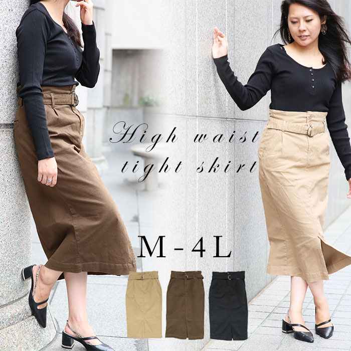 大きいサイズ レディース ハイウエスト ストレッチ タイトスカート ベルト付き スカート ボトムス ミモレ丈 スリット入り 体型カバー 着痩せ オーバーサイズ ビッグサイズ M L LL 3L 4L 韓国ファッション 夏服 夏新作_0909
