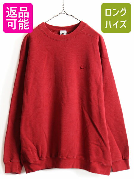 【8/21 クリアランスSALE 最大半額!】 90s USA製 ■ ナイキ スウォッシュ 刺繍 スウェット ( メンズ L ) 古着 NIKE 90年代 ワンポイント スウッシュ スエット トレーナー レッド| 中古 90's オールド アメリカ製 ロゴスウェット プルオーバー クルーネック スウェットトレー