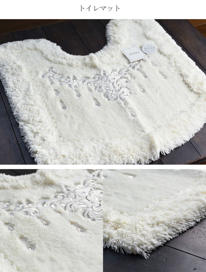 ■セット内容(4点セット) トイレマット ペーパーホルダーカバー スリッパ タオル 各1点 ■サイズ トイレマット:約 縦70x横70cm(クリ下 約50〜51cm) タオル:約34x80cm スリッパ:標準フリーサイズ 外寸 約27cm ■素材 トイレマット:アクリル100%(吸水素材) ペーパーホルダーカバー:綿 スリッパ:綿 タオル:綿 ★