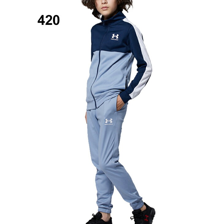 送料無料 ジュニア ジャージ 上下セット キッズ 子供服 130-160cm 男の子/アンダーアーマー UNDERARMOUR ボーイズ カラーブロック 二ット トラックスーツ/スポーツウェア 裏起毛 ジャケット パンツ 上下組 トレーニング セットアップ/1360671