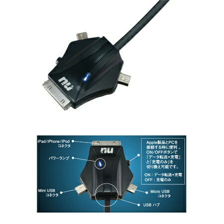 仕様 製品名 NU P2P POWER HUB JANコード 4534782911736 メーカー Nu 対応コネクタ Appleドック・MicroUSB・MiniUSBコネクタ 電力 USBバスパワー 5V動作 ランプ ブルーLEDパワーランプ