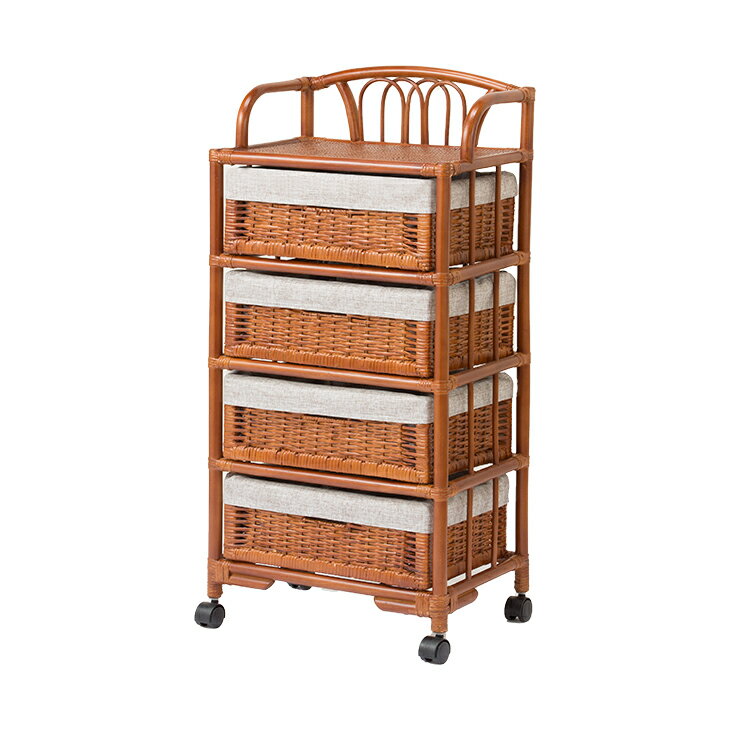 【直送】籐 ランドリーチェスト キャスター付き 3段 - 幅46×奥32×高83cm ラタン チェスト キャスター付き バスケット 天板 ナチュラル アジアン おしゃれ 天然籐 ランドリー収納 棚