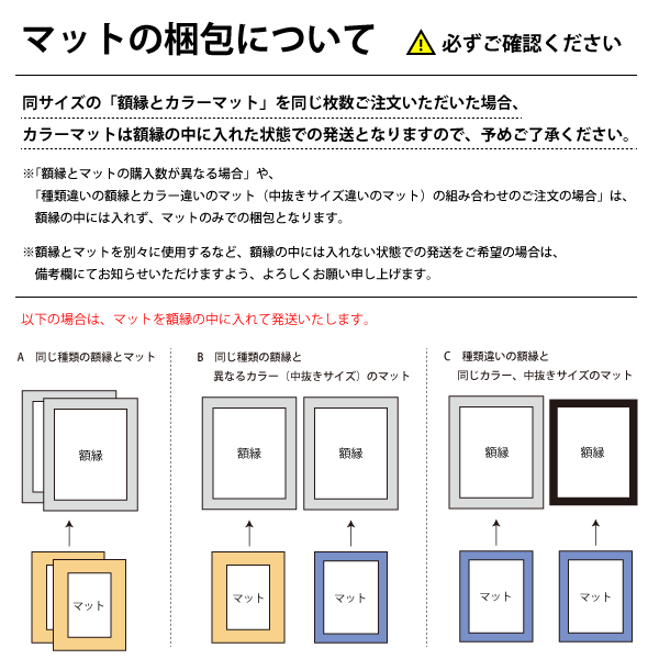 最大中抜きサイズ:110×110mm 表面無酸紙(ペーハー8.9±0.5)マット厚み:1.5ミリ ▼その他のサイズ >2号(210×154mm) >3号(278×198mm) >4号(360×330mm) >6号(418×280mm) >7号(460×210mm) >8号(460×338mm) >10号(533×413mm) >15号(658×535mm) >20号(727×530mm) >16正方額(160×160mm) >18額(180×135mm) >21額(201×151mm) >26額(263×213mm) >36額(360×290mm) >49額(485×395mm) >60額(606×455mm) >72額(727×545mm) >L37額(370×208mm) >L60額(602×302mm) ▼納期 受注確定・決済完了後、翌営業日〜翌々営業日に出荷可能▼マットの特注カットについて こちらの商品は特注でのカットが可能です。