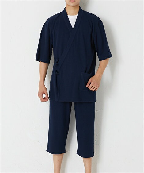 甚平 メンズ 肌離れいい 快適 ワッフル ネイビー/ブラック/杢グレー M/L/LL ニッセン nissen