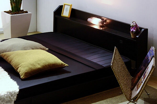 ヘッドキャビネットにライトとコンセントが付いて、更にフレームは安心の日本製!更に各サイズを専用金具で2台連結すればなんと13通りのサイズ展開!キングサイズはセミシングルを2台連結したサイズになります。